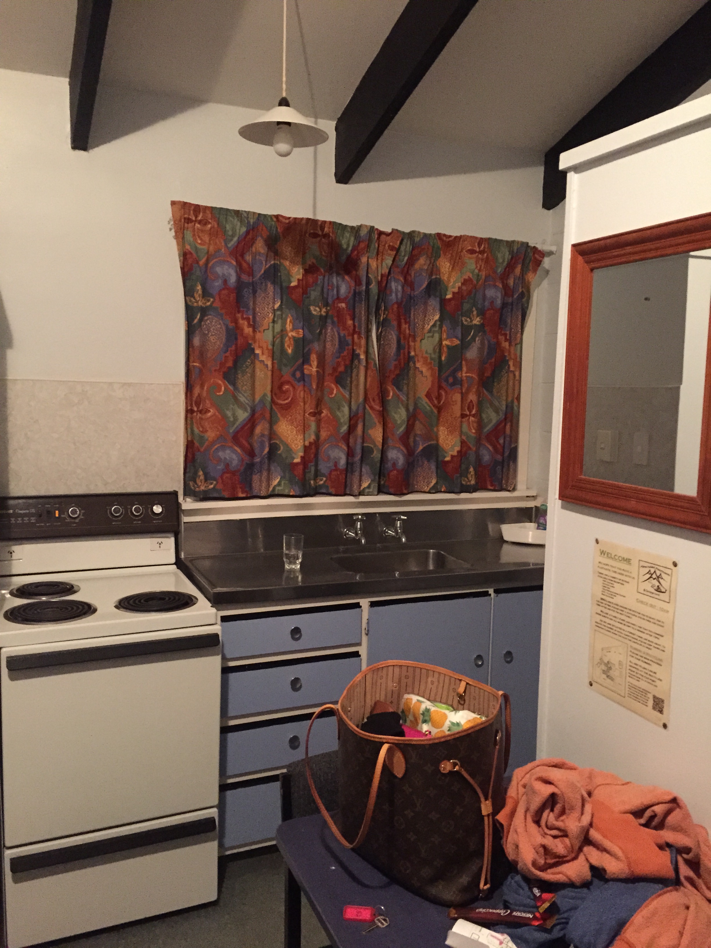 In terms of accommodation in Hanmer, a quick search of the internet lead us to stumble upon Alpine Holiday Apartments and Campground. I am never fussed about accommodation, so don’t expect luxury when you travel off my advice. I would prefer to spend money elsewhere, so for $60 (blanket hire included) we nabbed ourselves a little room with four beds, a kitchen and a shared bathroom.