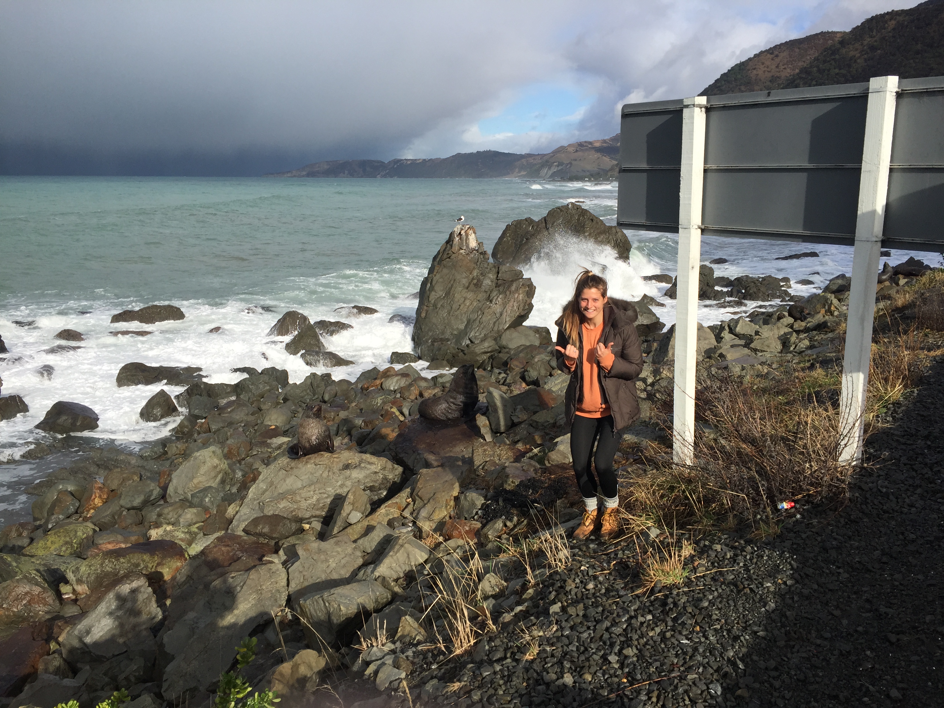 I walked down the front onto the black sandy beach once the rain had eased and got way too excited about the black pebbles… which, might I say, is worth checking out if you have never seen such a sight. These beaches can be found in Kaikoura, along with seals.