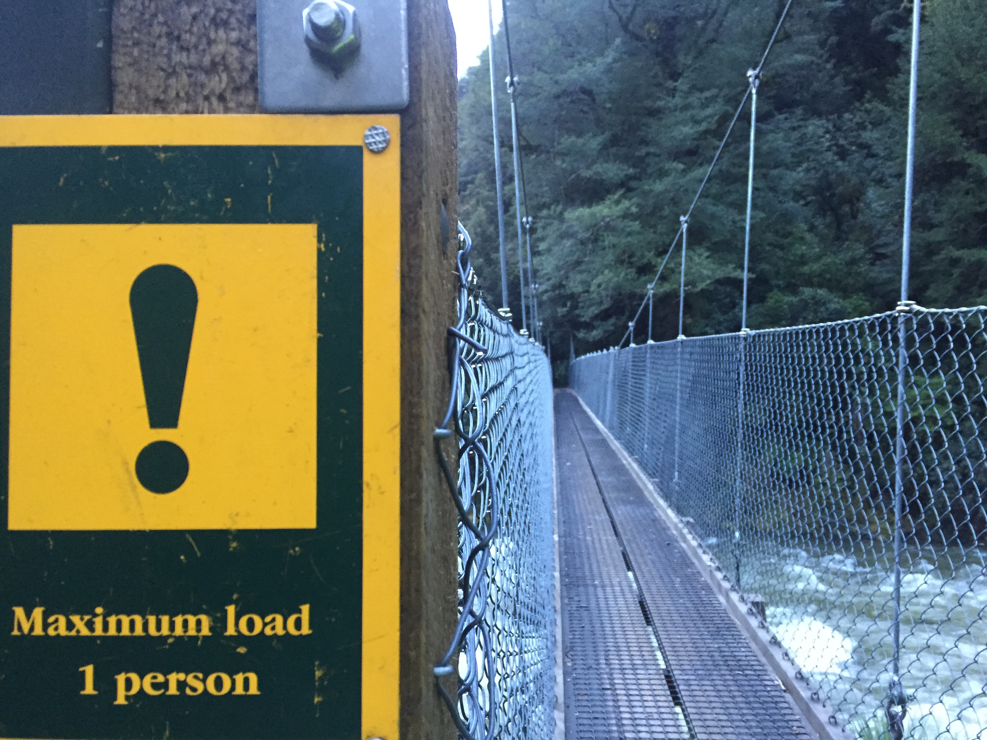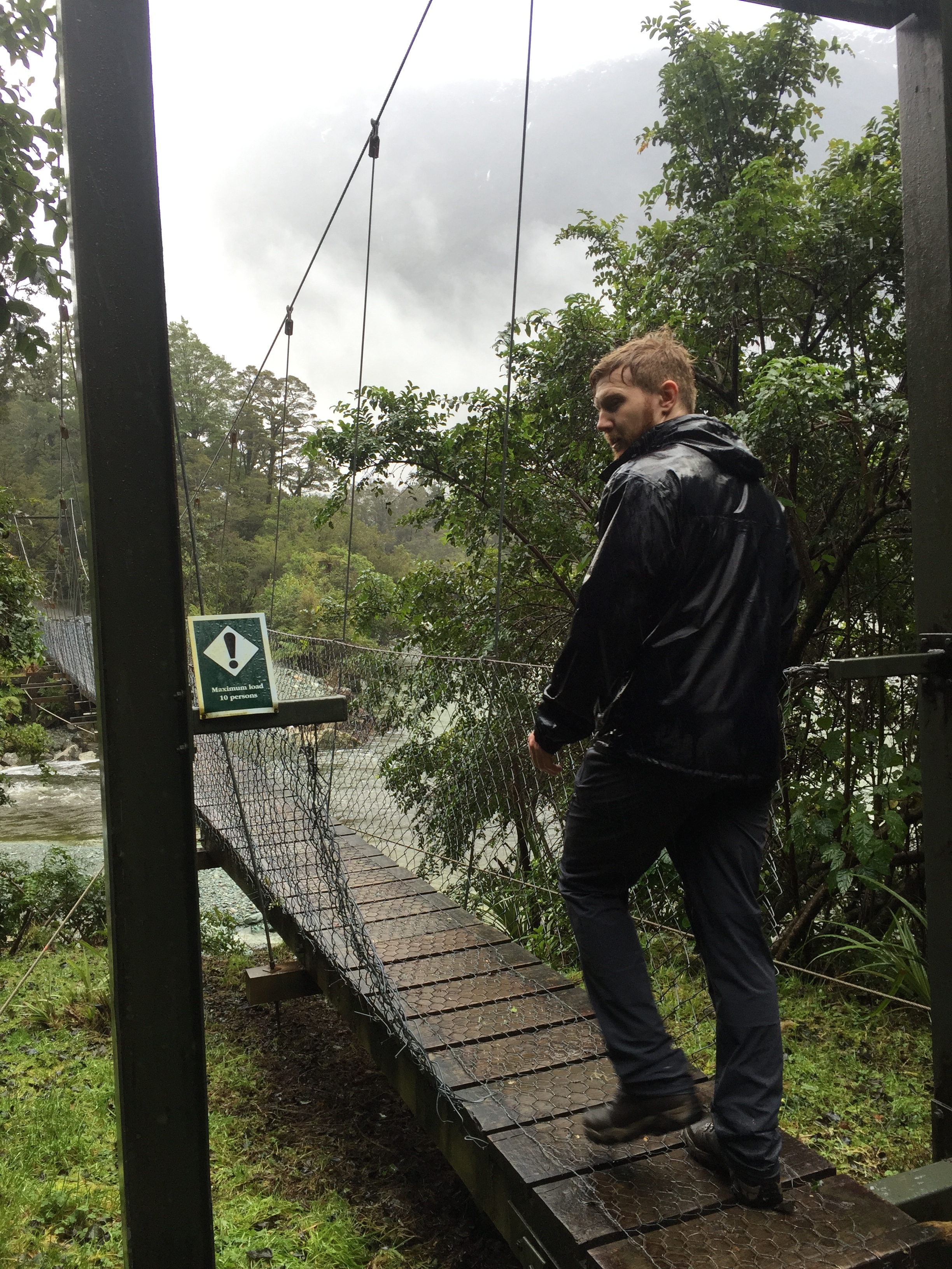 The only people we met on the track was a group of four hunters… slightly intimidating experience when people appear around the corner cradling rifles. Once the sun came up, the trek was marginally more impressive… winding up beside the huge Hollyford River and passing mountains with waterfalls pouring out of the side all over it became quite impressive.