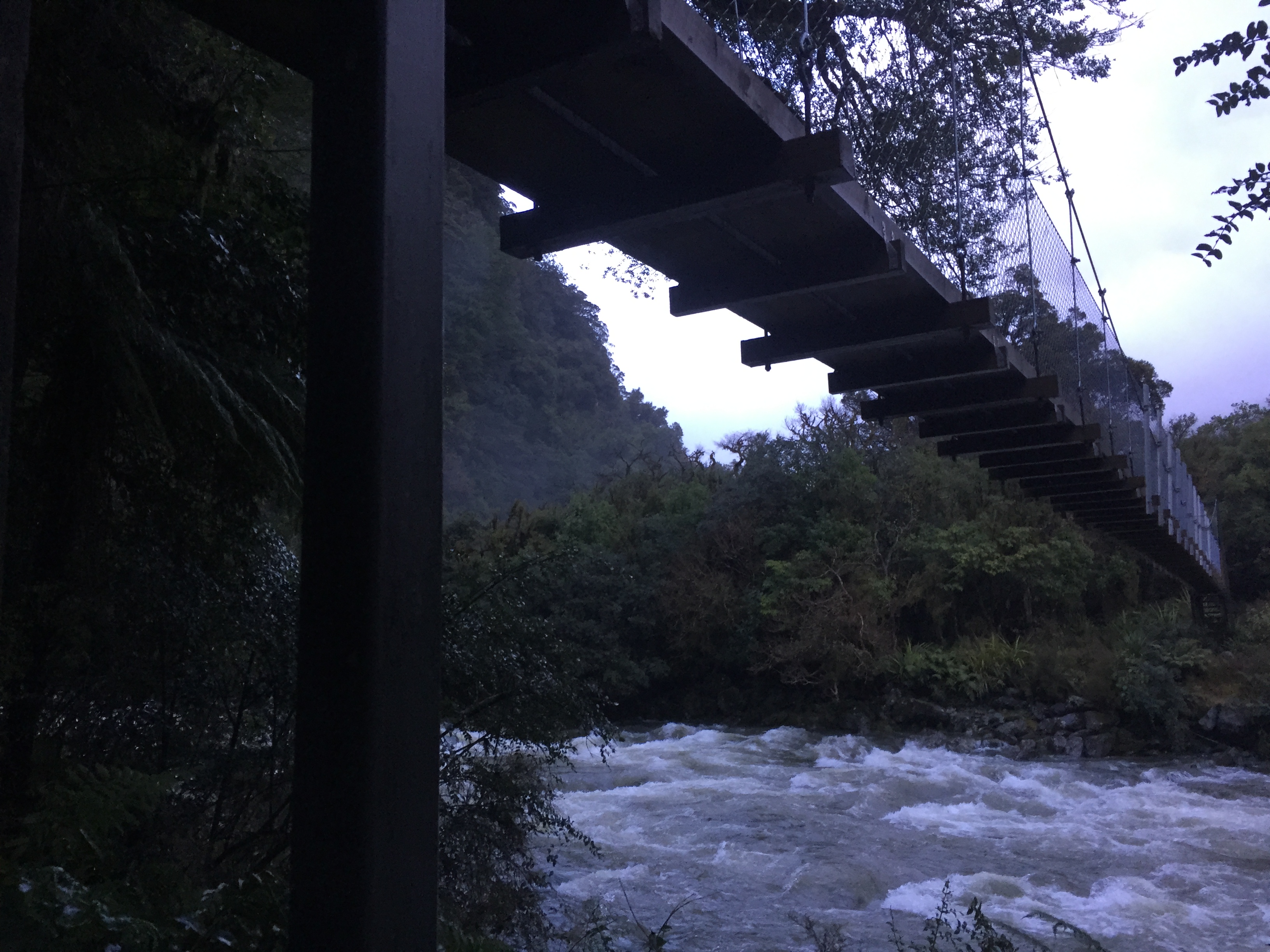For two hours we trekked in the rain and the dark… with our little torches shedding a circle of light on our surroundings… lighting up rocks and creeks and mud as we literally tramped our way through the Hollyford River Valley.